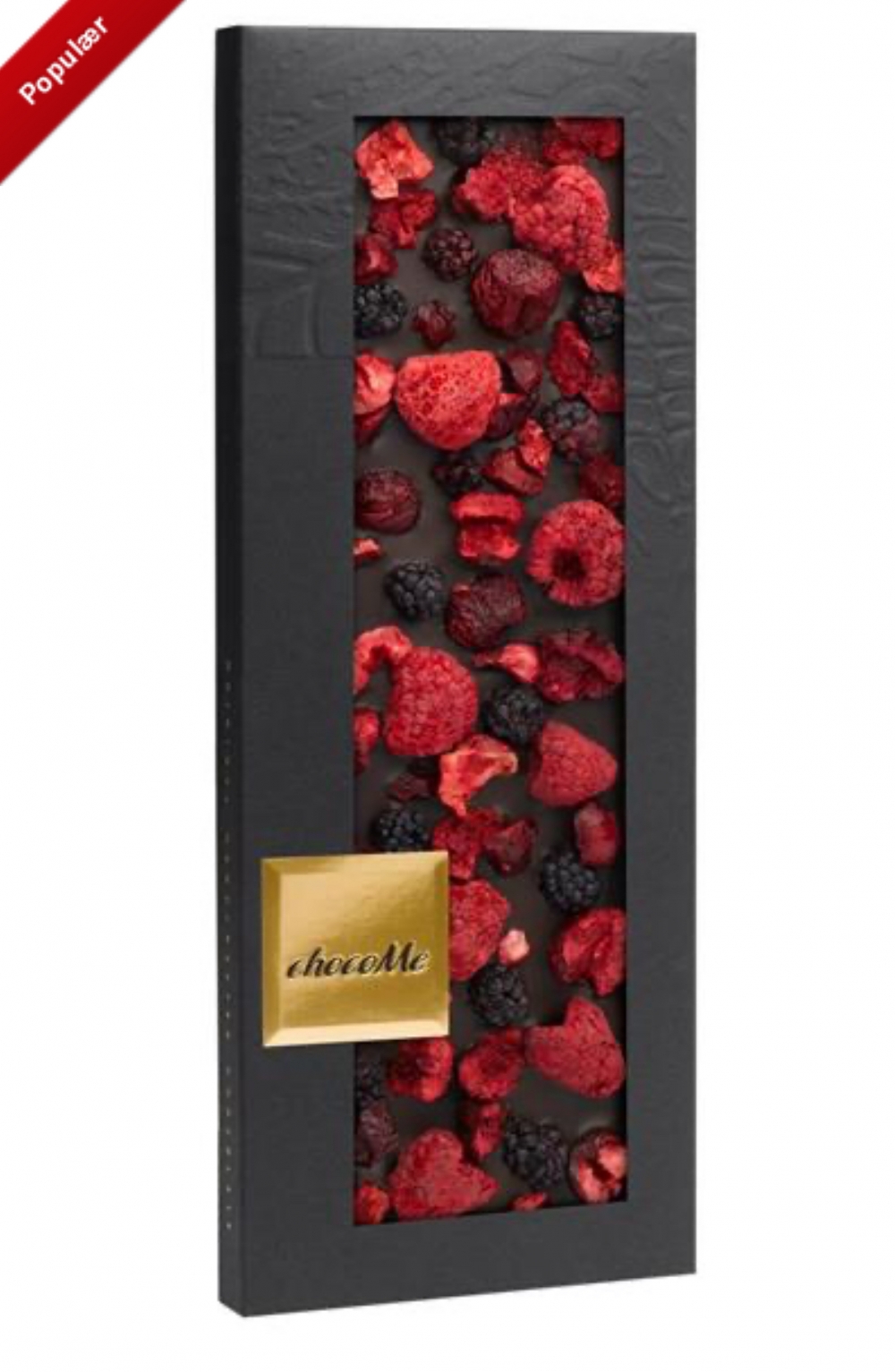Mørk Sjokolade 65% m/ Bringebær, Bjørnebær og Kirsebær.