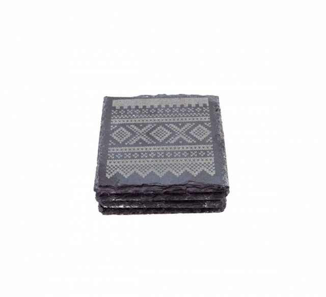 Skifer er naturlig slitesterk, robust og tåler godt ulike nivå av varme og kulde, samt værforandringer. Glassbrikkene kommer i en serie med ulike, matchende fat.