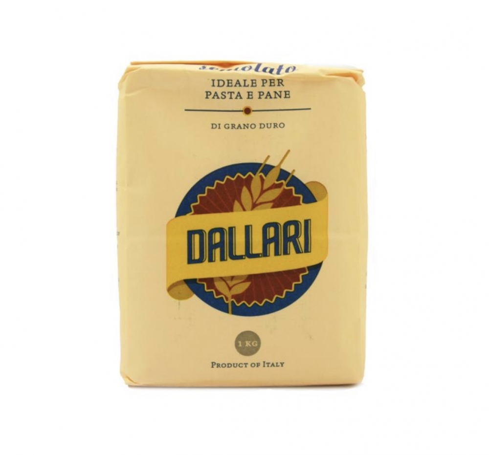 "Ideale per pasta e pane" står det på emballasjen - perfekt til pasta og brød. Et klassisk finmalt italiensk durumhvetemel fra Dallari i Modena.
