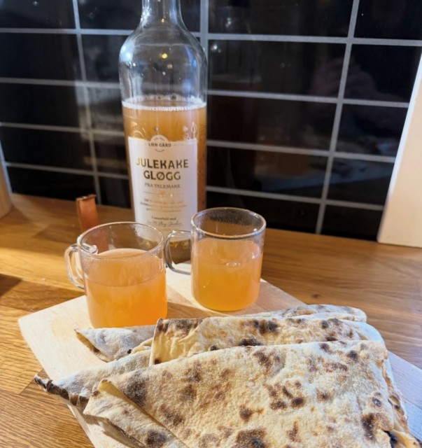 Julekakegløgg laget av solmodne epler og varme krydder som kanel, anis, nellik, kardemomme og gårdens honning. Passer perfekt sammen med julekaker, som en varm aperitiff eller lun dessert.